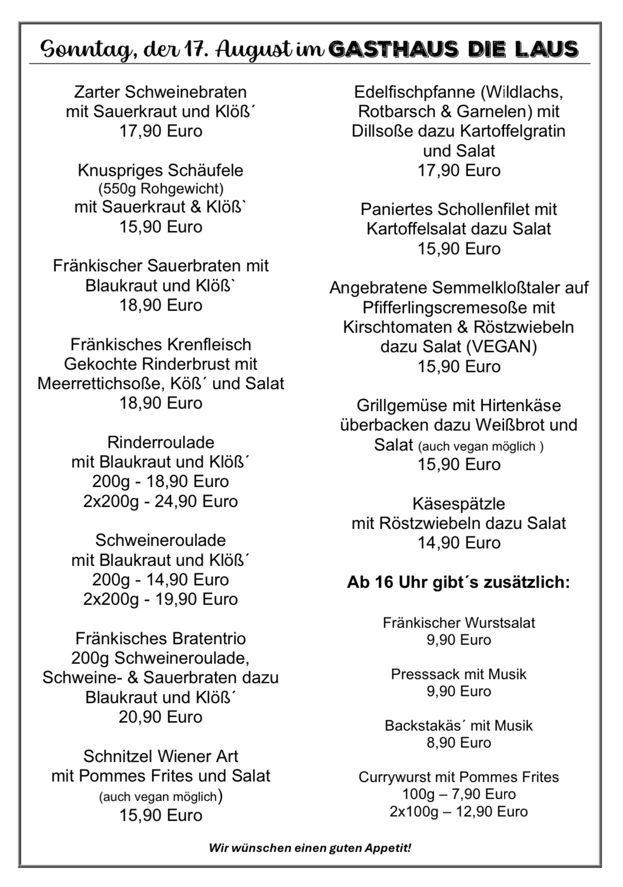 mit Meerrettichsoße und Klöß´ – 17,90 Euro